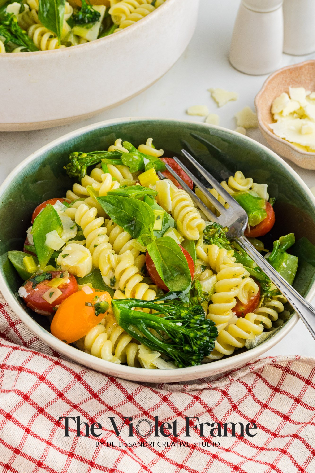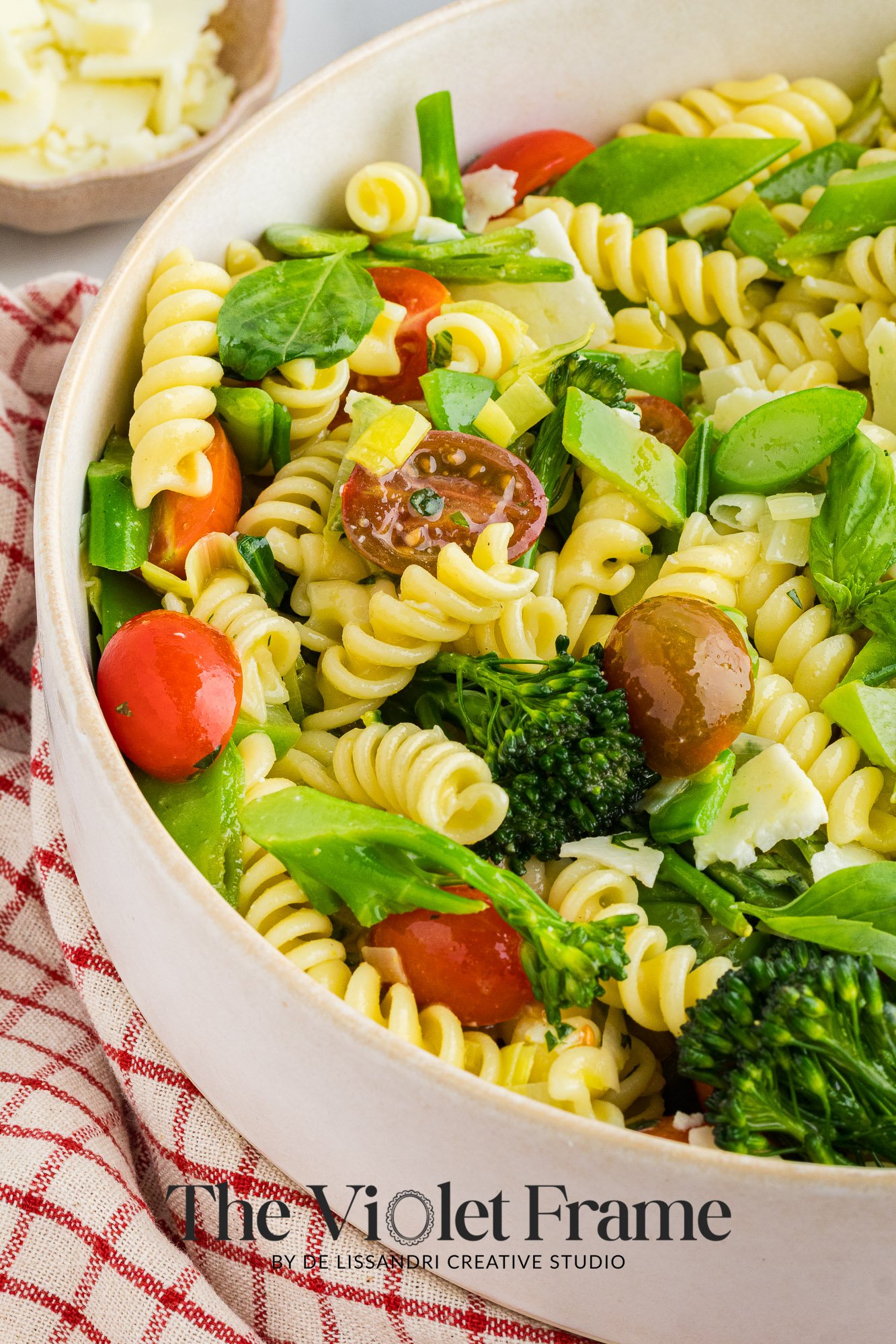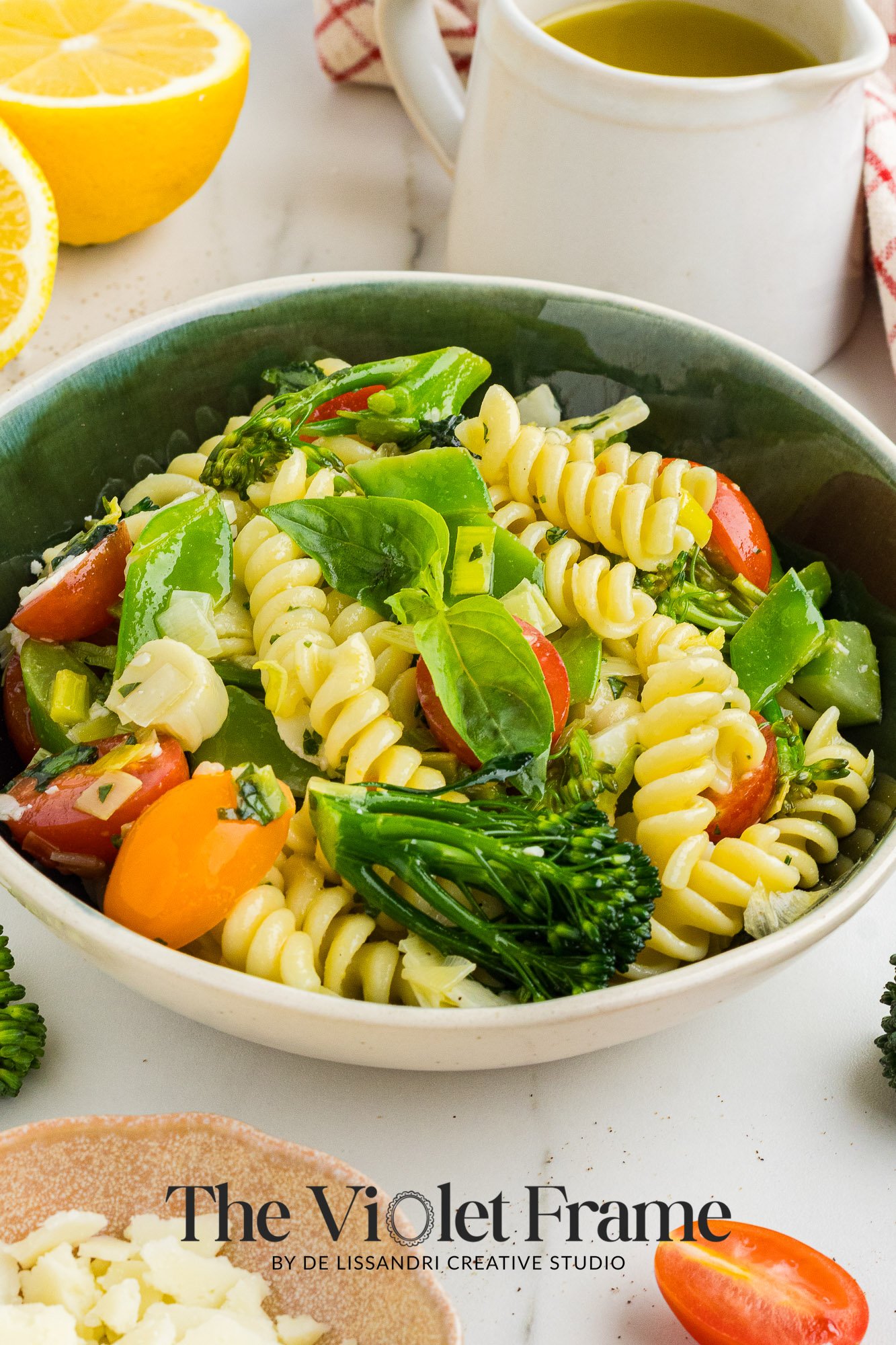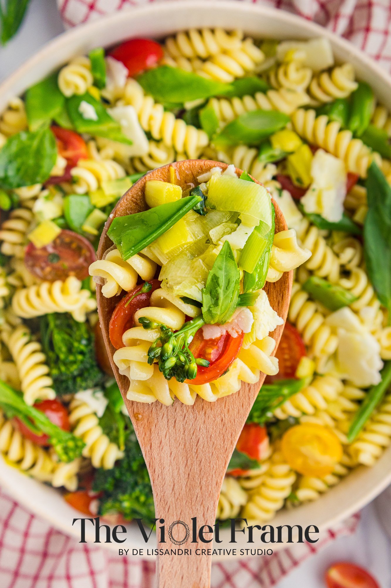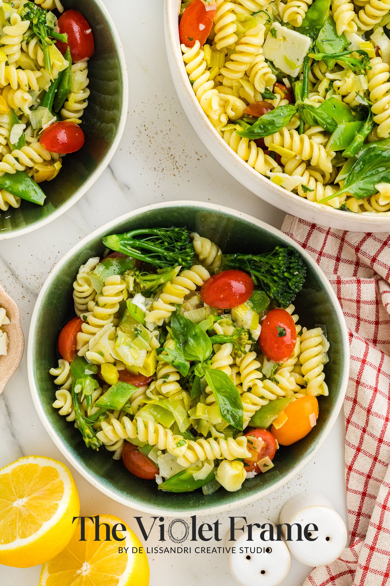 This vibrant Cold Pasta Salad is one of my go-to dishes for the spring/summer season when I’m hosting. It features al dente fusilli, tender broccolini, crunchy snap peas, juicy cherry tomatoes, and gently sautéed leeks, all coated in a bright, zesty lemon-mustard vinaigrette. Finished with salty pecorino and fragrant fresh basil, it comes together in just 30 minutes and is explicitly meal-prep friendly, holding well for 2-4 days.
